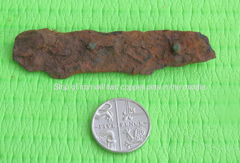Found this with my Manitcore, looks like an iron knife with 2 small copper rivets, found on a Roman site